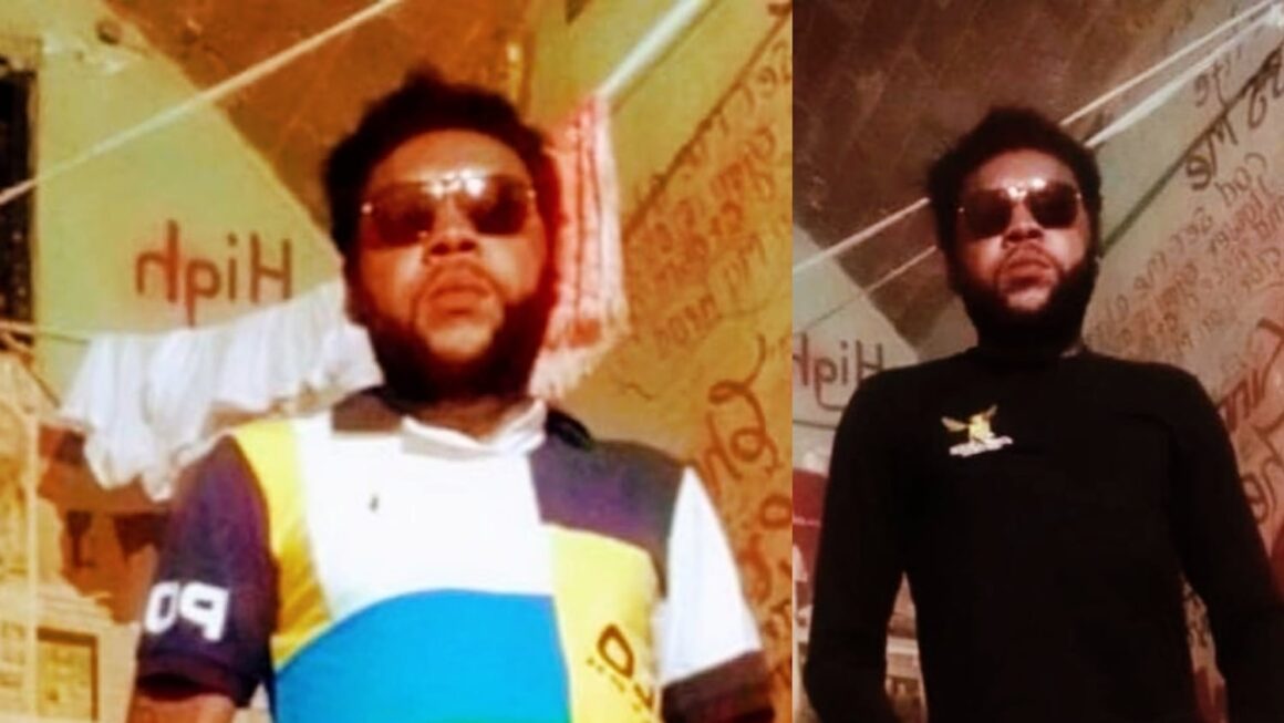 In the photographs, Vybz Kartel can be seen standing with a bearded, straight face and both of his hands in his pockets in a space that appears to be a section of a prison cell.
